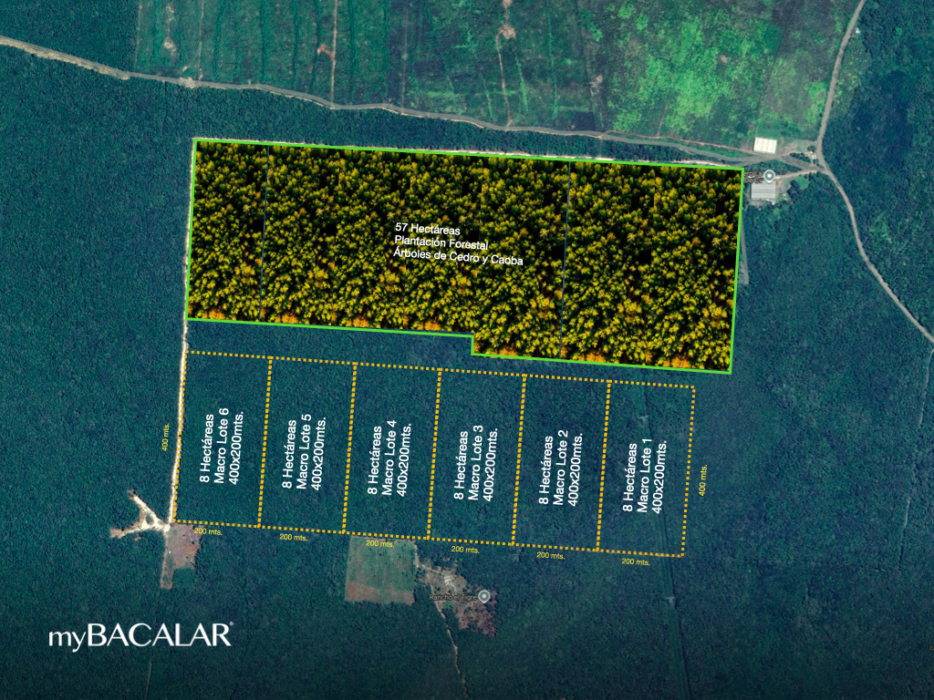 Este exclusivo portafolio cuenta con seis macro lotes independientes, cada uno con 8 hectáreas de selva virgen y vistas directas a una plantación de gigantescos árboles de cedro y caoba de 57 hectáreas: un paisaje único que realza la sensación de privacidad, belleza y valor a largo plazo.